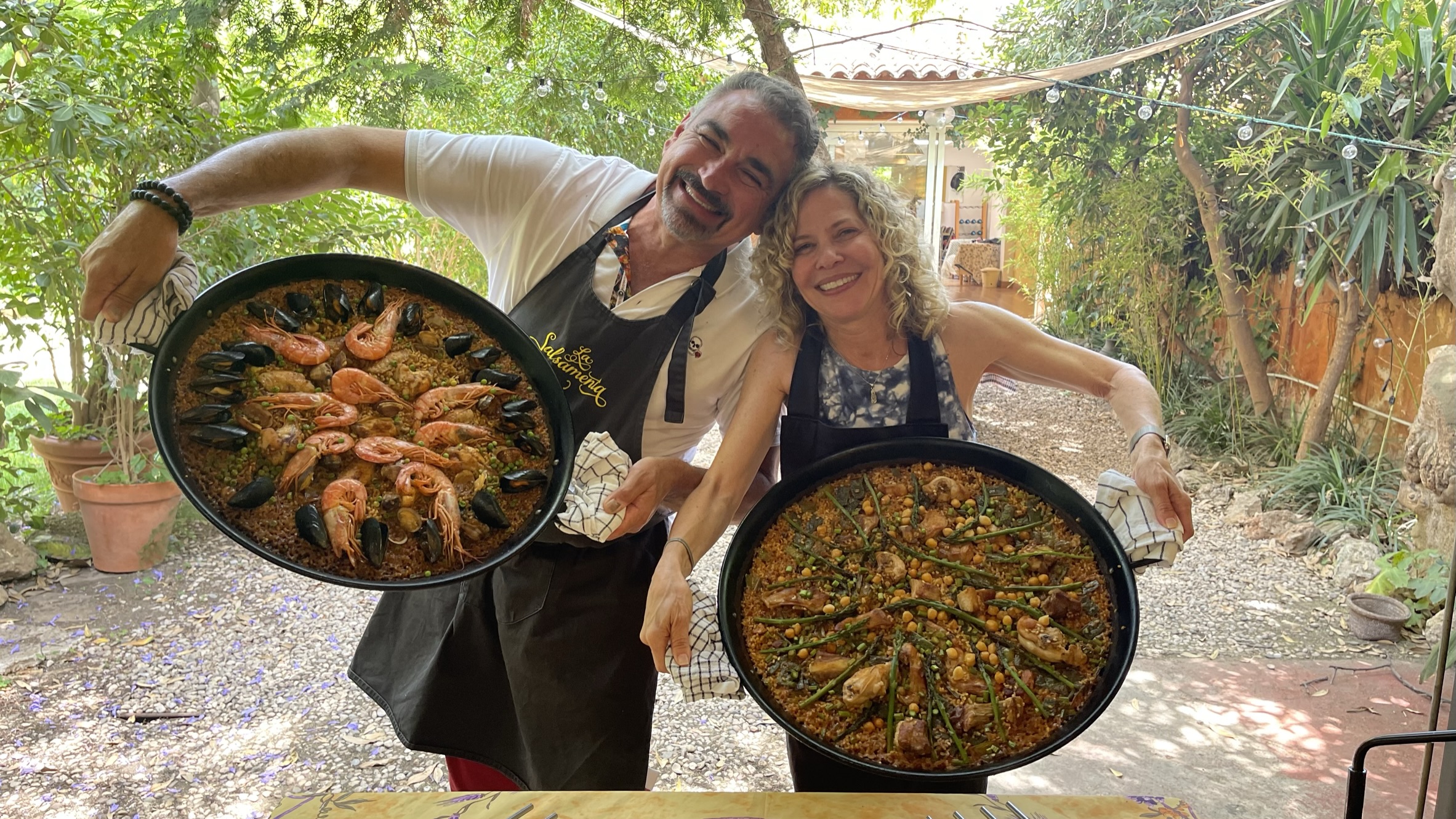 Secret Garden Paella Cooking Class we found on Airbnb experiences. Our host Clara greets us at the door with a